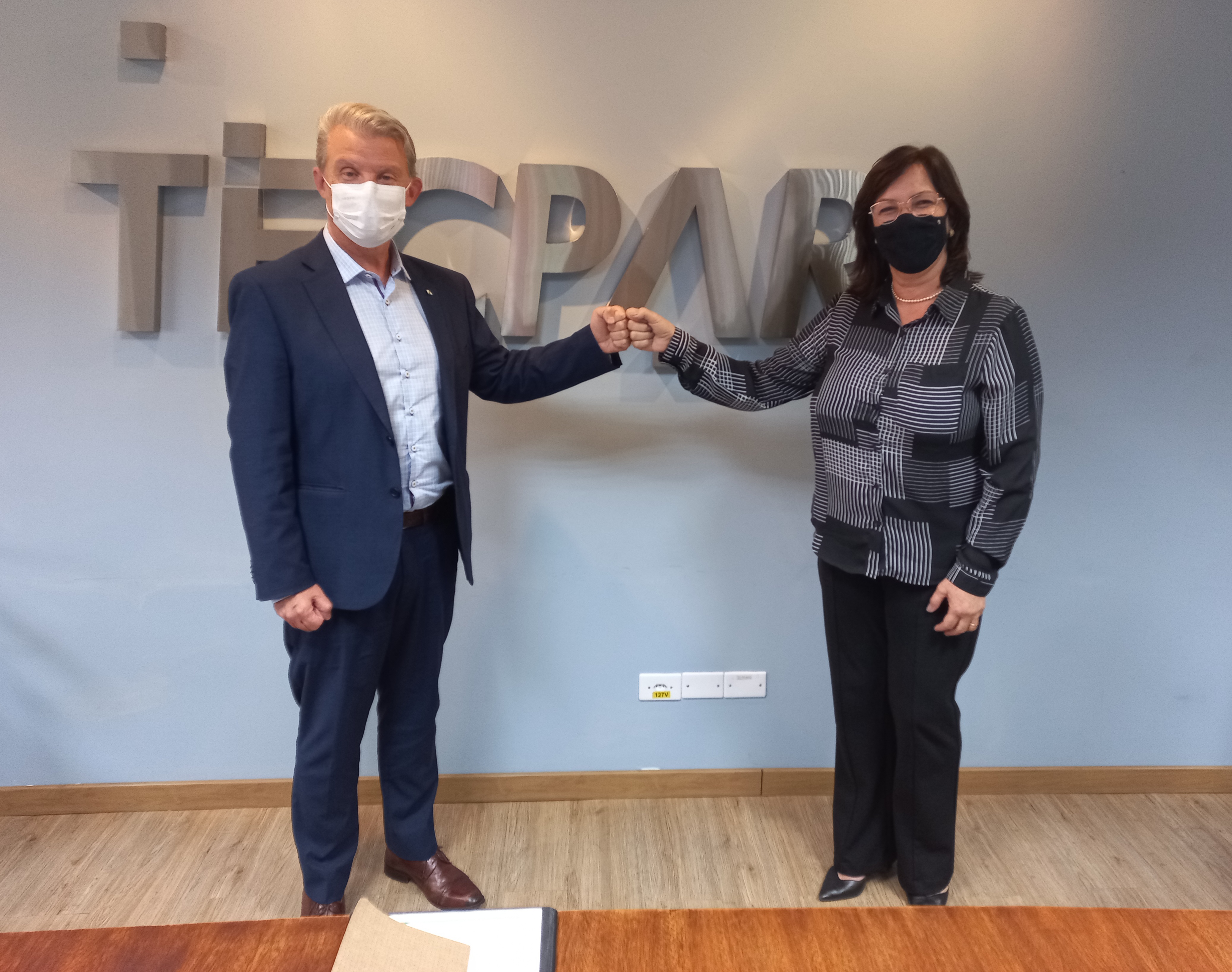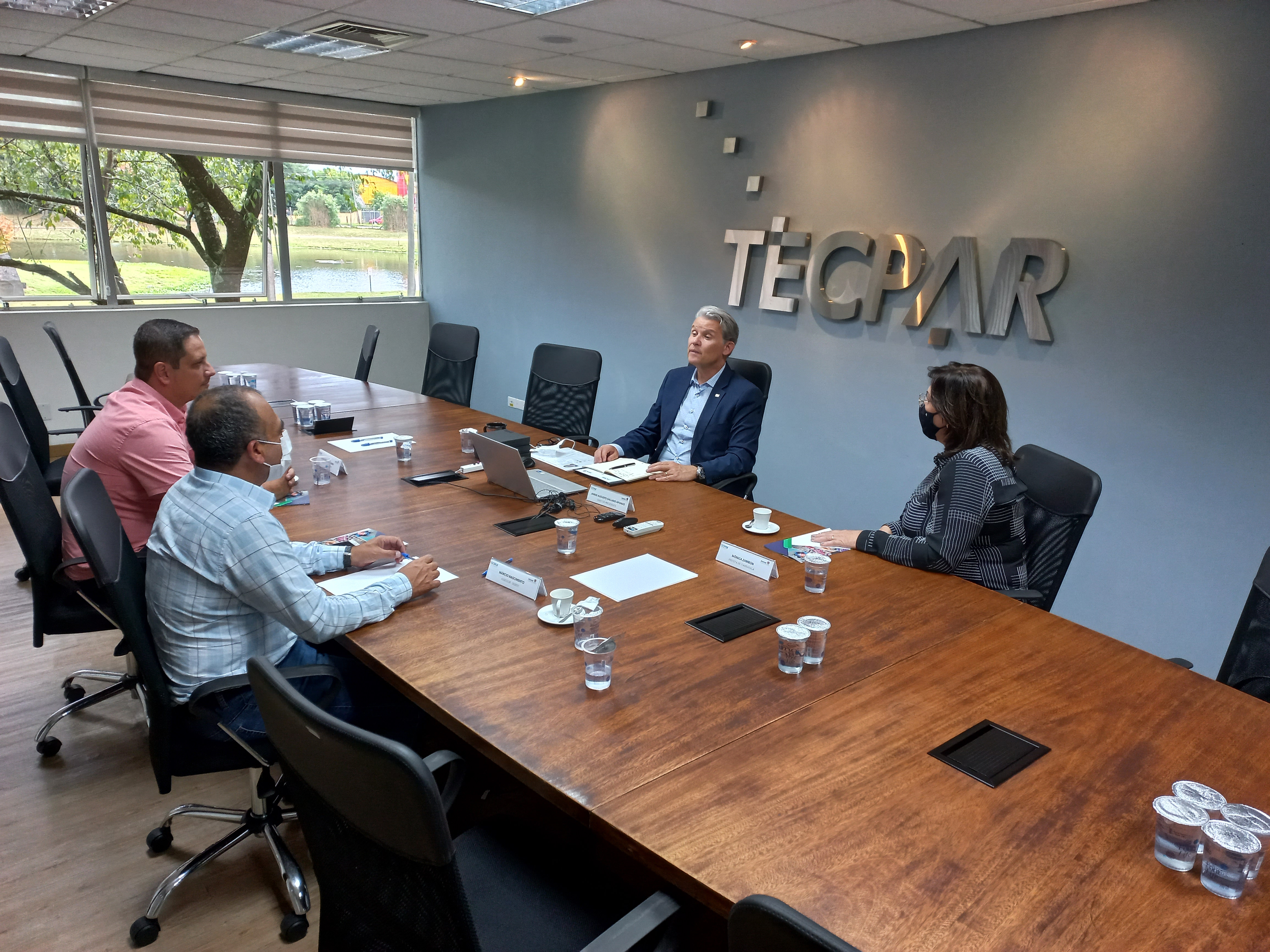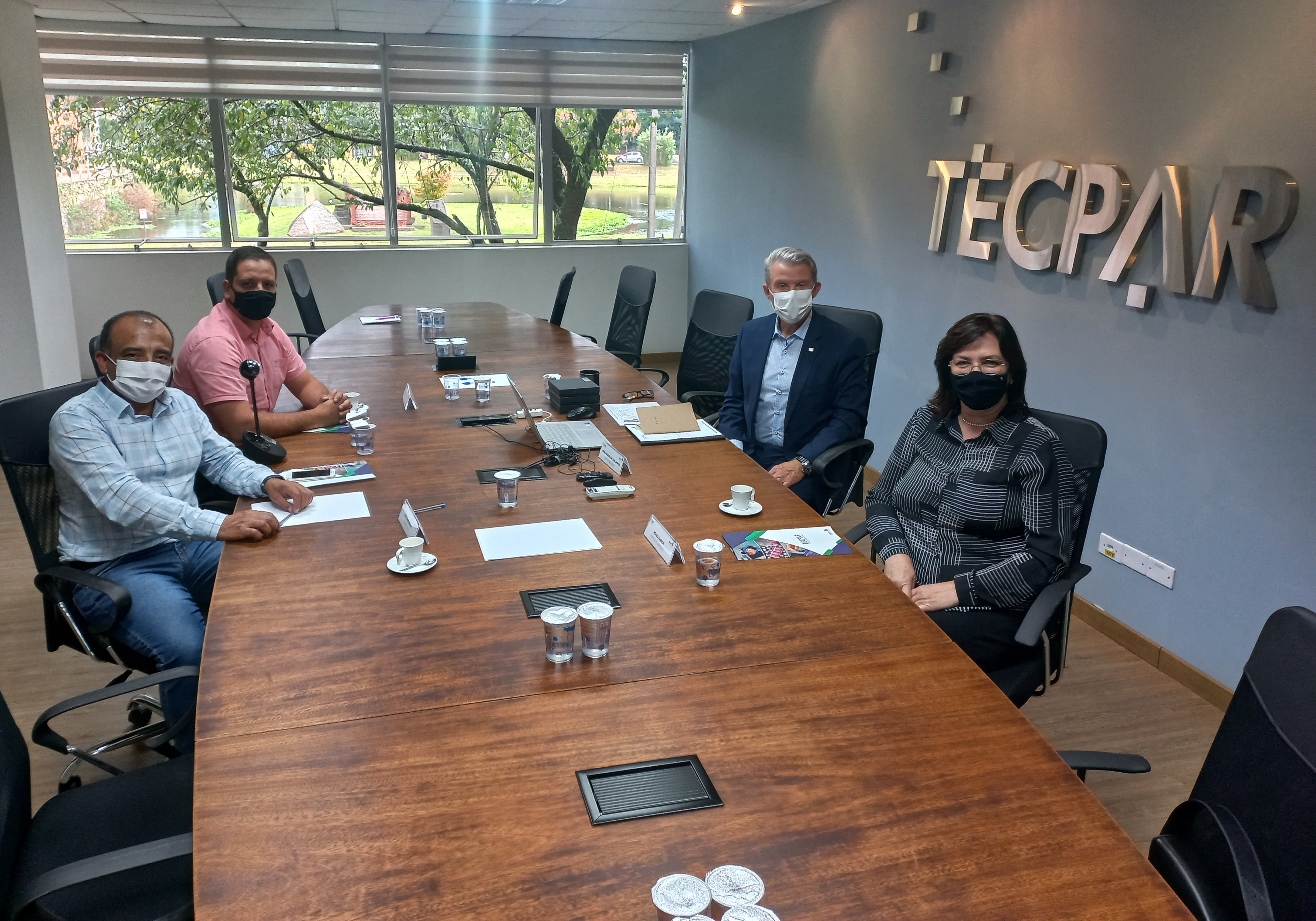 O servidor do Instituto Água e Terra (IAT) Flávio Ítalo Biacardio; o diretor-presidente do Tecpar, Jorge Callado; a prefeita de Itambaracá, Mônica Zambon Holzmann e o assessor da Secretaria de Estado do Desenvolvimento Sustentável e do Turismo (Sedest), Márcio Nascimento.
