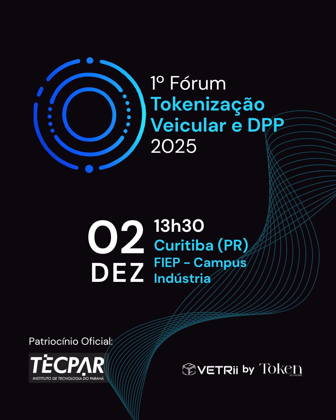 EVENTO – O 1º Fórum de Tokenização Veicular é organizado pela Vetrii, parceira tecnológica do Tecpar, e Token Economy; com o apoio de instituições como Detran-PR, Parque Tecnológico da Indústria, Sistema Fiep e Associação Brasileira de Engenharia Automotiva (AEA). Além do Tecpar são patrocinadores o Banco BV; Cardano Foundation, (plataforma blockchain) e Demarest (escritório de advocacia).