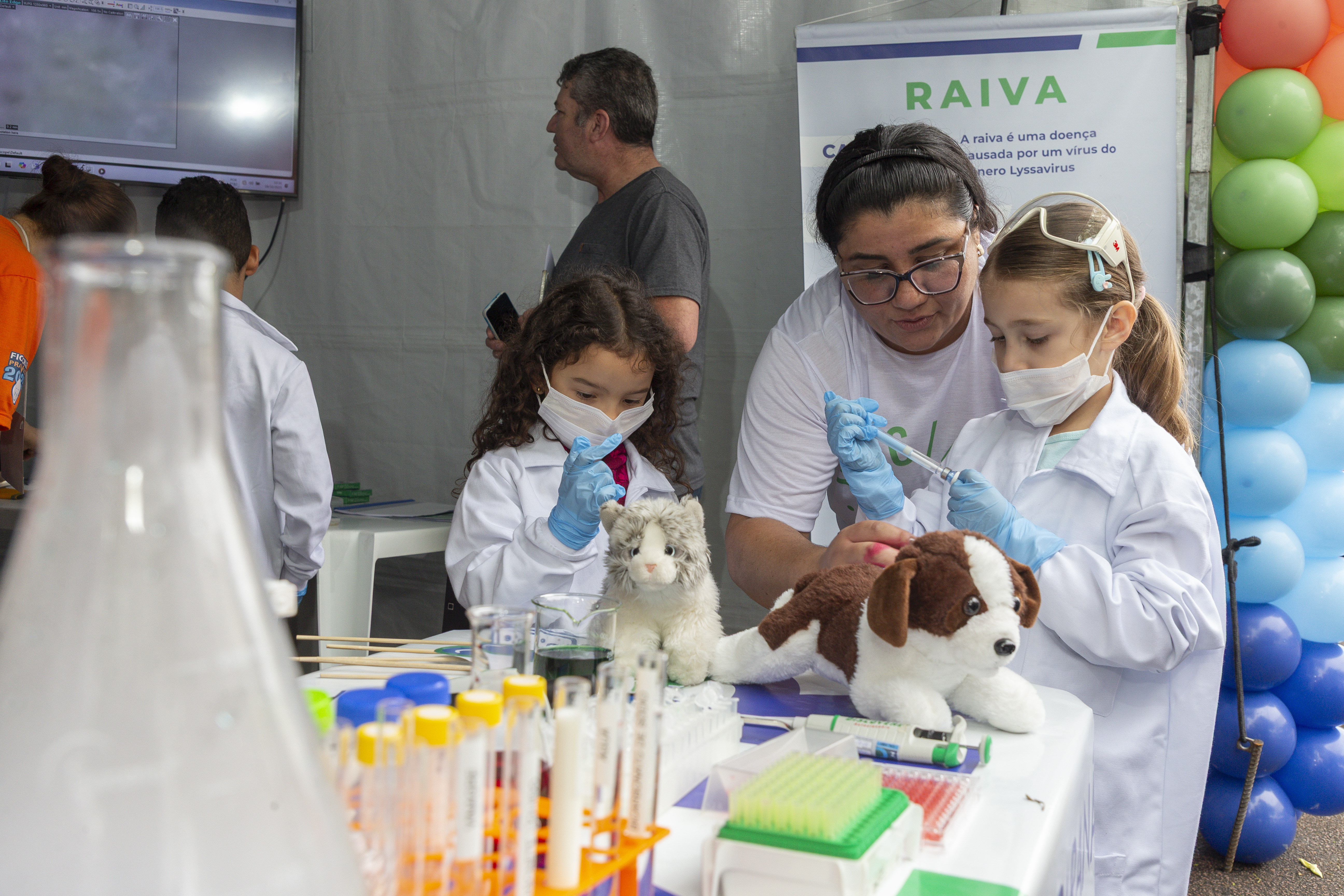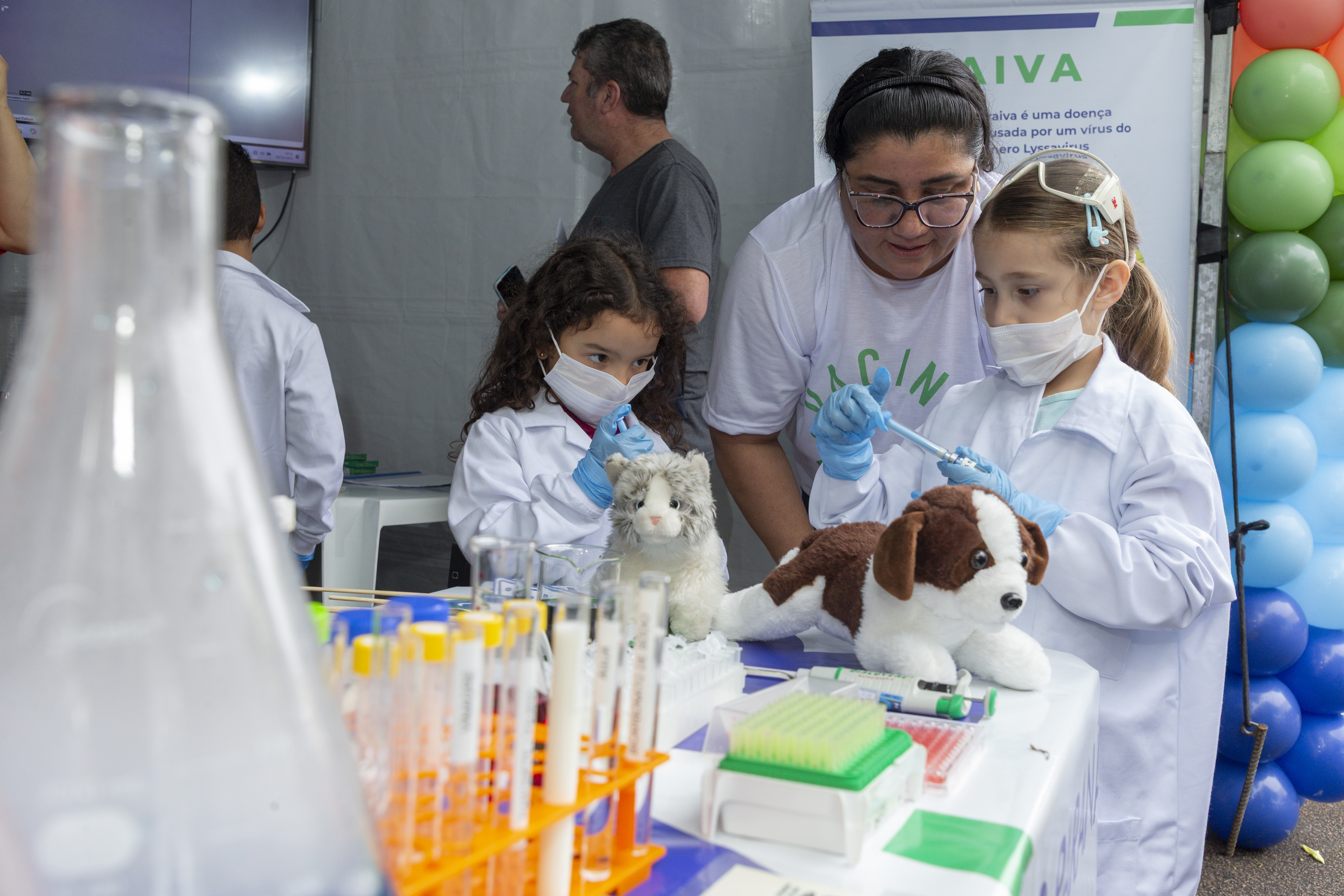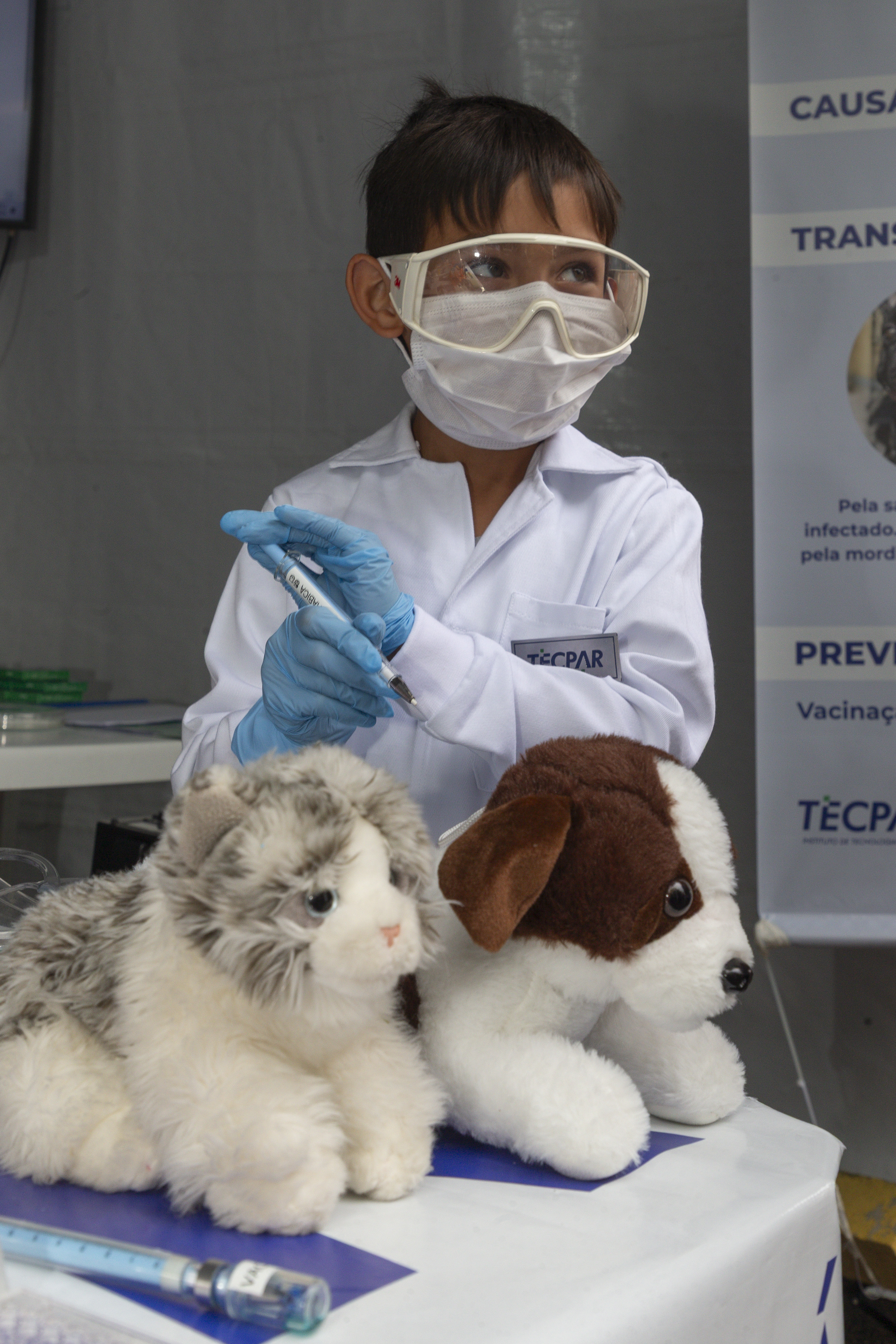 Por meio de uma simulação de vacinação em cães e gatos, os colaboradores do Tecpar explicaram sobre o papel do instituto como produtor da vacina antirrábica animal, e sua contribuição para a erradicação da doença no Brasil.