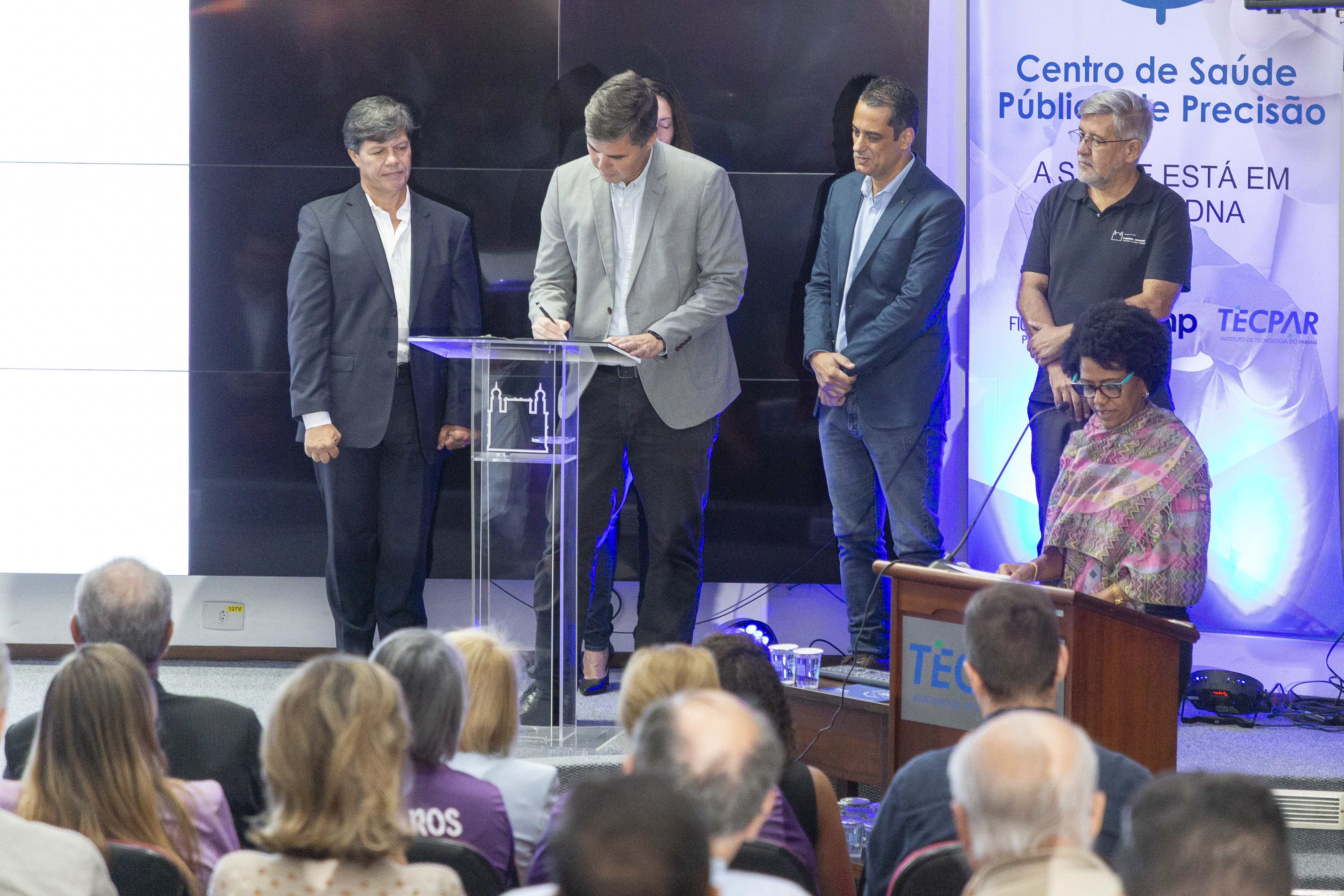 O acordo que formaliza a parceria foi assinado em evento realizado no auditório do Tecpar, que contou com a presença de pesquisadores em saúde de precisão, representantes de instituições da área da saúde e profissionais de áreas correlatas. O ato marca o fortalecimento da cooperação institucional no Paraná, com foco na integração entre pesquisa, inovação e políticas públicas de saúde em medicina de precisão.