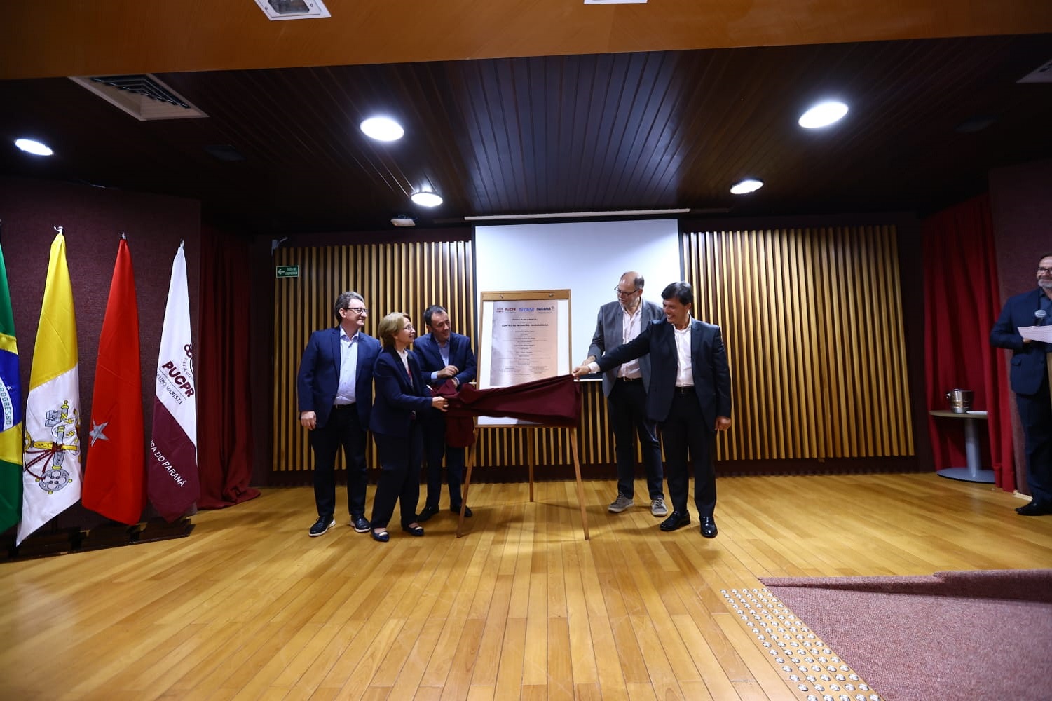 Solenidade nesta quarta-feira (1º) marcou o lançamento da pedra fundamental do Centro de Inovação Tecnológica do Instituto de Tecnologia do Paraná (Tecpar) em Londrina, na Região Norte do Estado. A nova unidade do instituto será no Câmpus Londrina da Pontifícia Universidade Católica do Paraná (PUCPR) e contará com investimentos também da Secretaria da Inovação e Inteligência Artificial (Seia) e da Secretaria da Ciência, Tecnologia e Ensino Superior (Seti).