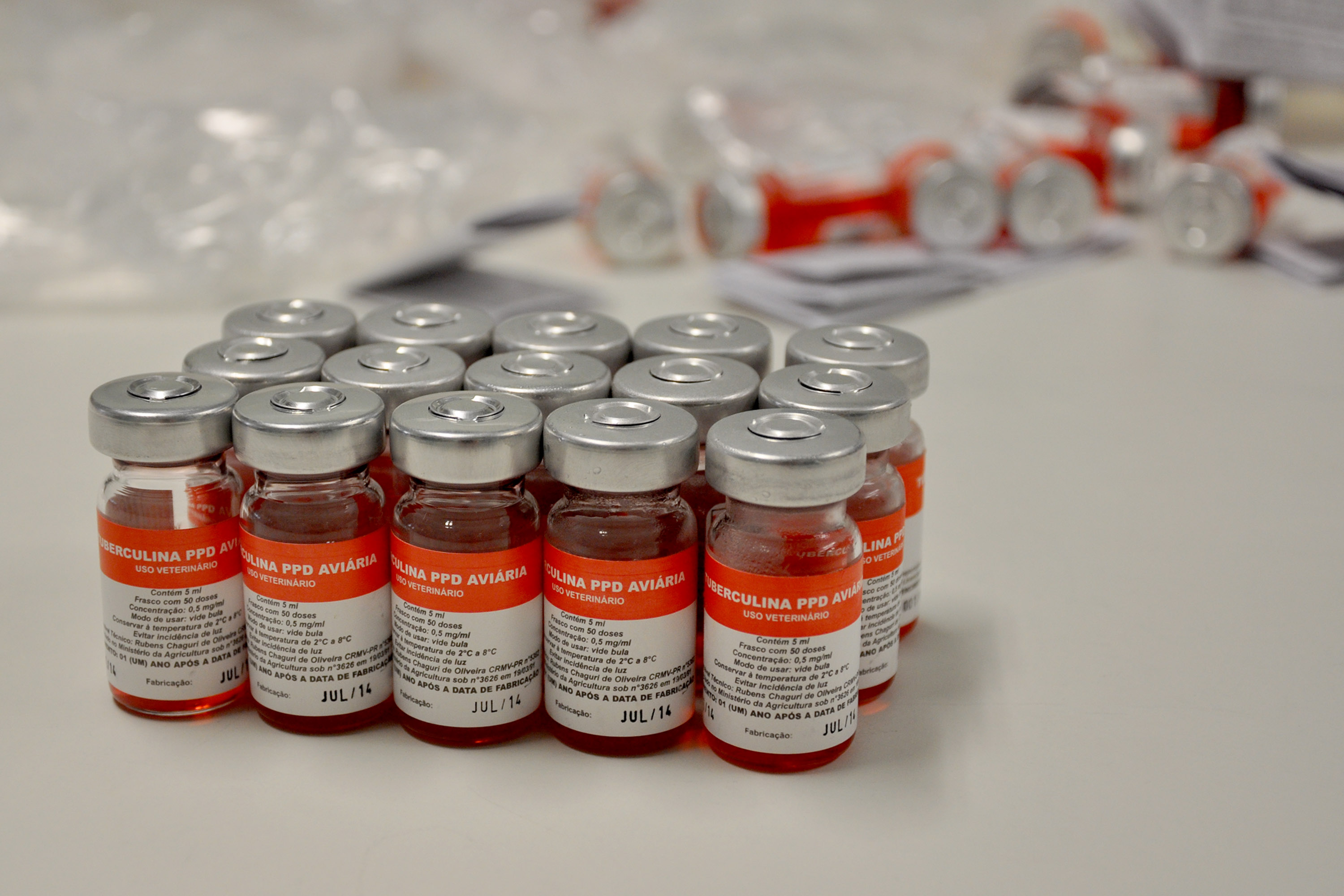 PRODUTOS – Sete produtos serão produzidos no Laboratório de Produção de Insumos para Diagnóstico Veterinário do Tecpar: reagentes para diagnóstico de tuberculose bovina, que incluem a tuberculina PPD bovina e a tuberculina PPD aviária; reagentes para diagnóstico de brucelose bovina, com a produção de Antígeno Acidificado Tamponado (ATA), Antígeno para Prova Lenta e Antígeno para Prova do Anel do Leite (Ring test); e Kits de diagnóstico pela técnica de imunodifusão em gel de ágar (IDGA), com kits para diagnóstico de Brucella ovis e para Leucose Enzoótica Bovina.